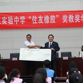 為了更好地履行企業(yè)社會責(zé)任、推動當(dāng)?shù)亟逃聵I(yè)發(fā)展,9月20日,住友橡膠(中國)有限公司繼2016年設(shè)立“住友橡膠獎教獎學(xué)”基金后,再一次向常熟市濱江實驗中學(xué)捐贈5萬元住友橡膠獎教獎學(xué)基金,用于獎勵認(rèn)真投入到教學(xué)這一神圣職務(wù)中的教師、以及為不辜負(fù)老師期待,每天勤奮讀書的同學(xué)們。